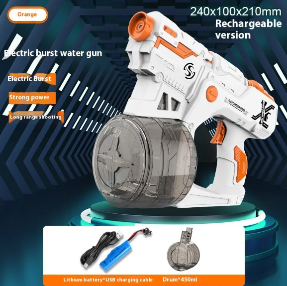 Grazie al sistema di sparo automatico e alla potente pressione, puoi lanciare getti d’acqua continui e a lunga distanza, perfetti per dominare ogni sfida. Il serbatoio ad alta capacità ti permette di giocare più a lungo senza interruzioni, mentre la batteria ricaricabile ti garantisce massima comodità.